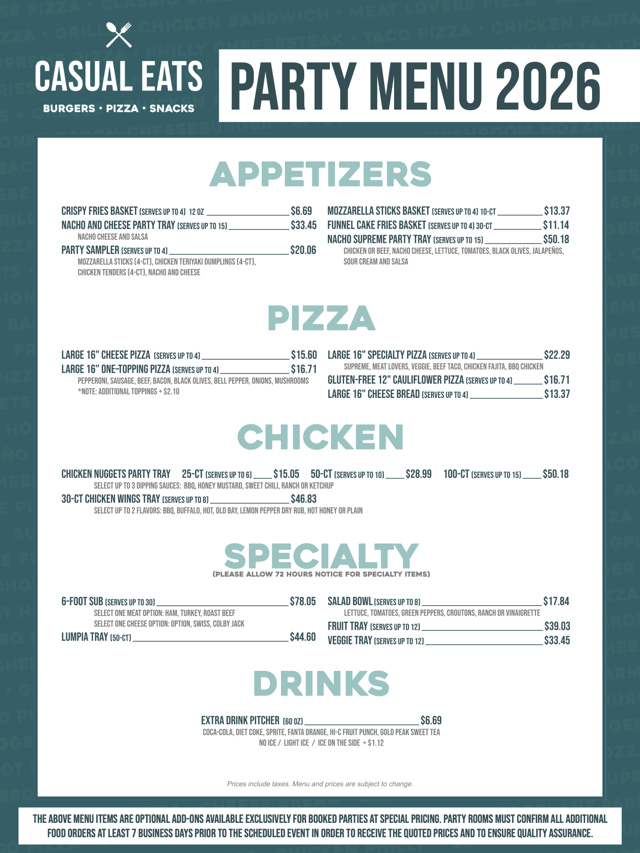 • All party cancellations are subject to a 30% non-refundable fee based on the selected package